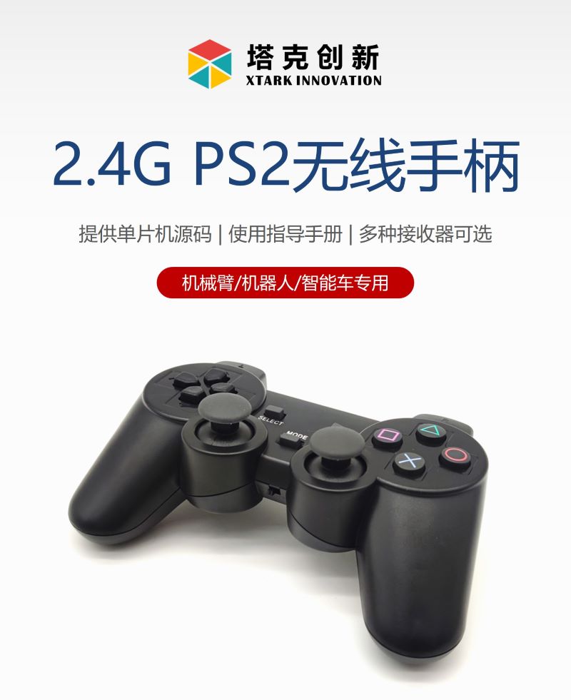 产品简介:2.4G PS2无线手柄具有17个按键,4个摇杆模拟通道,支持两种模式,无配对情况下,自动休眠,遥控距离可达15米,提供原创产品资料,STM32开发代码等,特别适合智能车、机器人、机械臂、云台等控制。